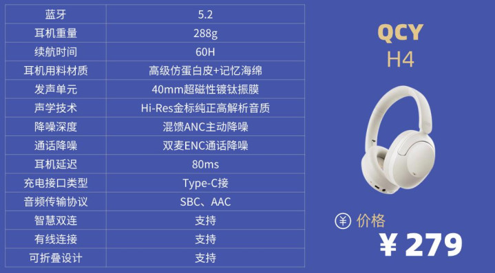 学生党头戴降噪耳机排行榜10强机型6:Q C Y H4头戴式降噪耳机