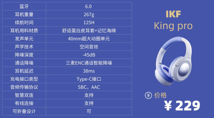 学生党头戴降噪耳机排行榜10强机型7:I K F King pro头戴式降噪耳机