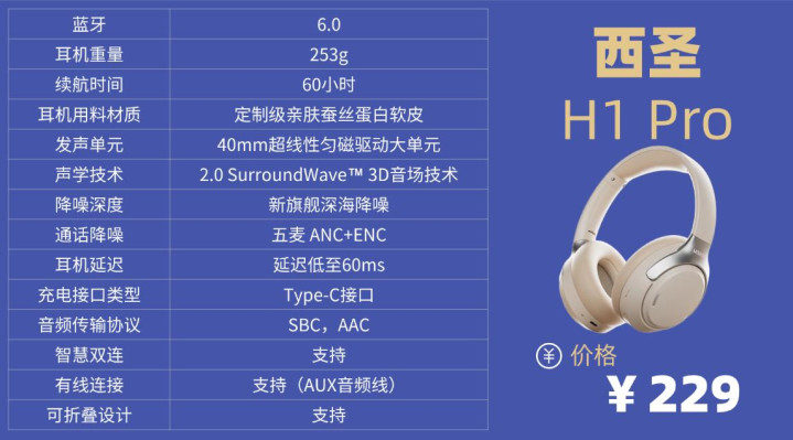 学生党头戴降噪耳机排行榜10强机型1:西圣H1 Pro头戴式耳机