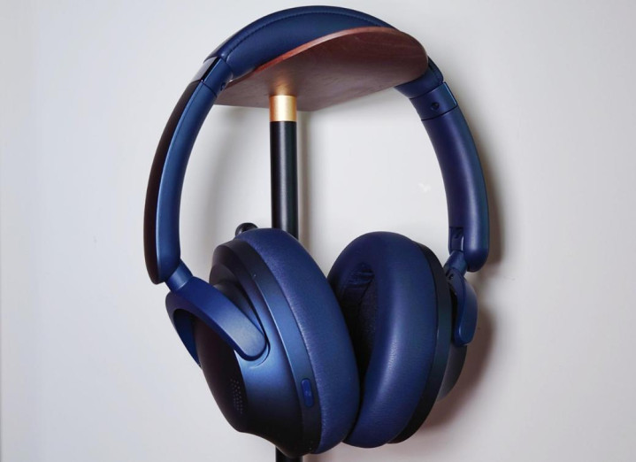 这款耳机延续了品牌一贯的稳重设计,深海蓝磨砂材质看着有一定潮流感。机身重量控制得不错,比较轻盈,还能折叠起来放进附赠的耳机袋里,日常携带挺方便。耳罩是慢回弹记忆海绵搭配皮革材质,头梁衬垫柔软度刚好,支撑力也适中,对不同头型的适配性尚可。长时间佩戴下来,不会有明显夹头感,也不会压迫眼镜,物理隔音有一定效果,同时能保持基本透气。