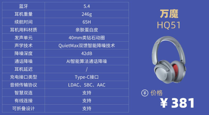 学生党头戴降噪耳机排行榜10强机型8:万 魔HQ51头戴式降噪耳机